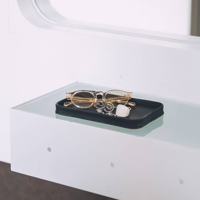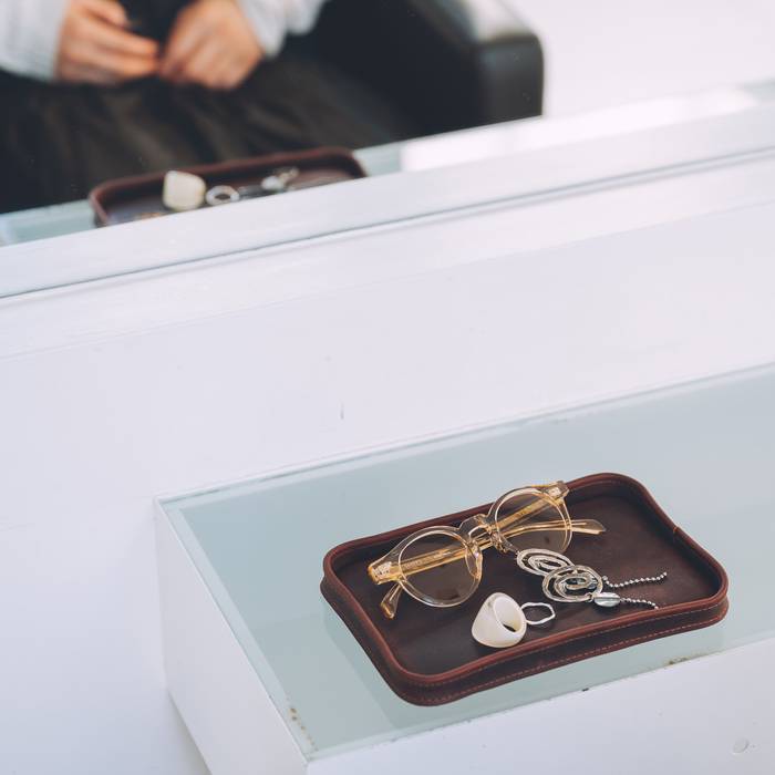 アクセサリーや小物などを置けて、自宅やオフィス、店舗などあらゆるシーンにマッチするオールレザートレー。
