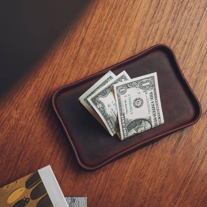 大き過ぎず、小さ過ぎず、使いやすいサイズのオールレザートレー。 アクセサリーやメガネ、小物を置くことはもちろん、キャッシュトレーとしてもおすすめの製品です。 お札は折らずに、そのまま置くことができます。 本体は構造上、中央部分が隆起し縁が低いので、ストレスを感じることなくスムーズに取ることができます。