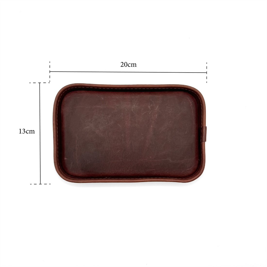 素材の厚みを最大限に生かすため、芯材を使わず制作したオールレザートレー。 鞄を作る際に用いられる”捨てマチ技法”を使用し、縁を縫い付け、使いやすくしなやかさと温かみが感じられる特別な製品です。アクセサリーや小物を置いたり、ディスプレイのほか、キャッシュトレーとしても多種多様な使い方が可能。