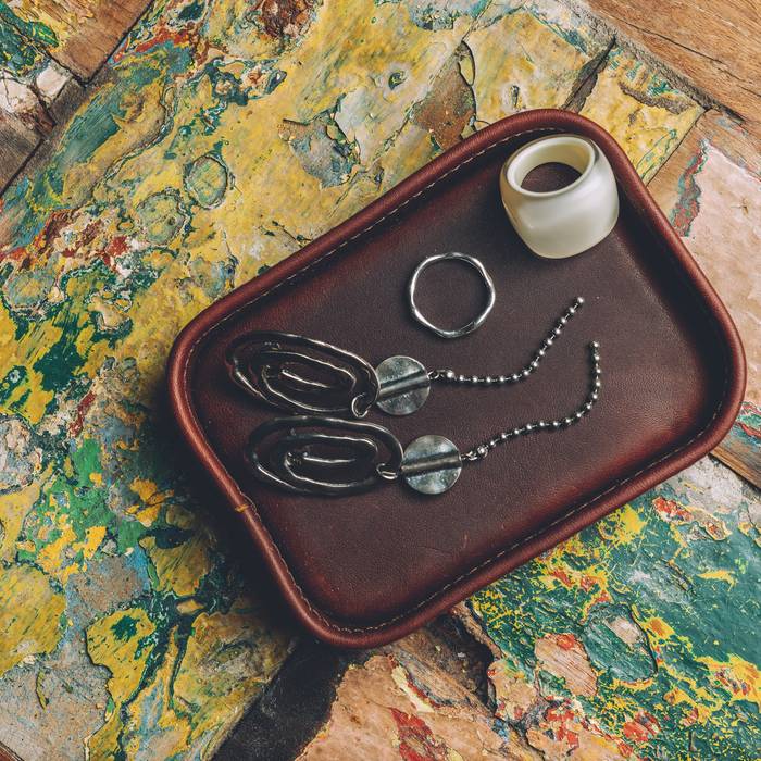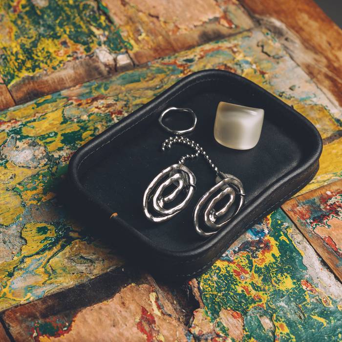 アクセサリーや小物などを置け、自宅やオフィス、店舗などあらゆるシーンにマッチするオールレザートレーのsmallサイズ。