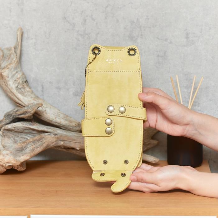 保護ネコ支援になるプロジェクト「aoneco」とaruciのコラボシザーケースの限定カラーです。この商品には、保護ネコ施設への寄付「1,800円」が商品価格に含まれています。"厳かにネコ"がテーマのネコ型スリムシザーケース。可愛くなりすぎない大人なネコアイテムなので、性別年齢問わずお使いいただけます。フラップの形、そこへのネコの型抜き、ネコのチャーム、そして背面にも隠れネコ要素。コンパクトながらシザーはしっかり5丁収納できます。背面にもポケットが付いており、スマホやメモ帳を入れるのに便利です。