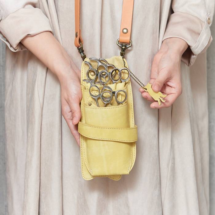 スリムシザーの大きな特徴は、まずフラップがあること。何店舗もかけもちされる方や動物に刃物があたらないようトリマーさんにもおすすめです。そしてポケット、ダッカールベルト、ショルダー、フラップと、全てのパーツがバラバラになります。お手入れに便利な仕様になっています。背面のホックを外すと底も大きく開き、中にたまった髪の毛を取り出しやすい仕様になっています。