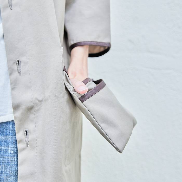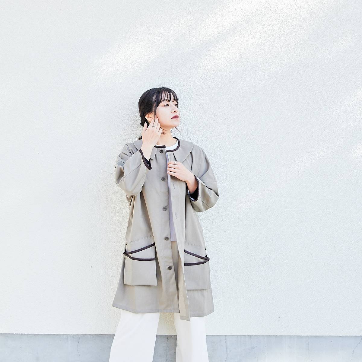 そのまま着ていただくのはもちろんのこと、シザーポケットを付けることもできます。コートのポケットの中にシザーポケットを付けると一枚羽織るだけで仕事着になります。 シザーポケットはホックで付けるため、取り外しも簡単。aruciのシザーポケットを既にお持ちの方は、ホックを付けてお届けします。そうすることで、付け替えてお使いいただけます。