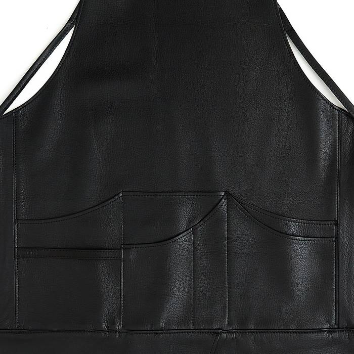 ハイブランド御用達の革タンナーからセレクトした、レザージャケットにも使われる上質な革を洗濯可能な特殊染料で仕立てました。水洗いが可能です。革の常識を覆す唯一無二のエプロンです。※寒い所に保管していると稀に部分的に白くなることがあります。これは革の脂がういてきたものなので、ドライヤーを10cmほど離してあてると消えます。※色止めはしていますが、水分や汗によって色移りする可能性があります。気になる方は薄い色の服は避けてください。