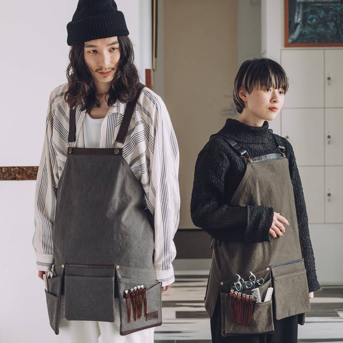あらゆる職人に向けた、新しいワークウェアができました。ベストとエプロンの良いところを集めた、aruciオリジナルのパターン。肩への負担を軽減し、仕事を妨げない足捌きの良い仕様。ヴィンテージ感あふれるバイオウォッシュ加工による帆布に、パラフィン加工で仕上げ、スタイリッシュな雰囲気を演出しました。