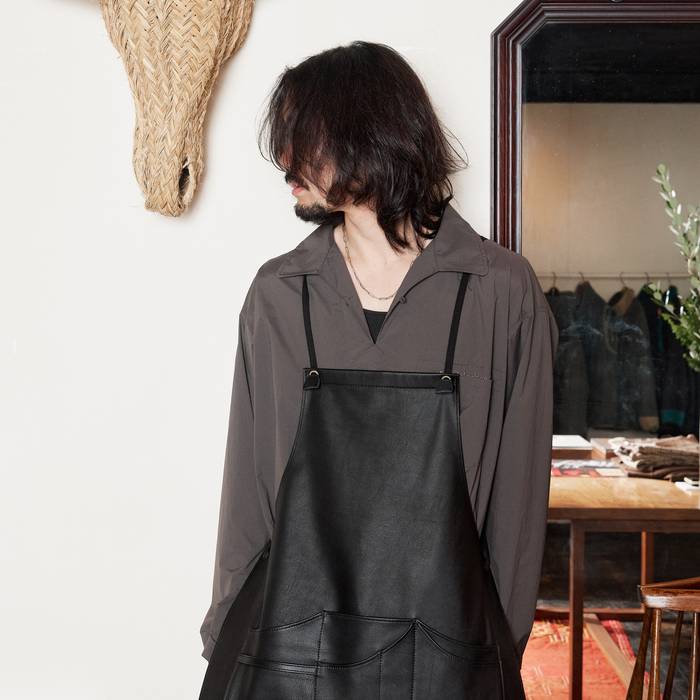 ハイブランド御用達の革タンナーからセレクトした、レザージャケットにも使われる上質な革を洗濯可能な特殊染料で仕立てました。水洗いが可能です。革の常識を覆す唯一無二のエプロンです。※寒い所に保管していると稀に部分的に白くなることがあります。これは革の脂がういてきたものなので、ドライヤーを10cmほど離してあてると消えます。※色止めはしていますが、水分や汗によって色移りする可能性があります。気になる方は薄い色の服は避けてください。