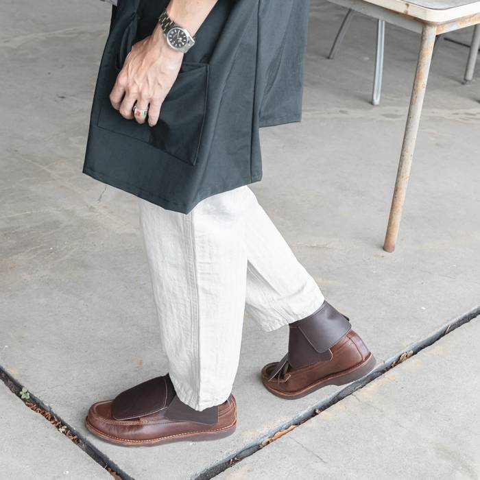 ファッションなども見られる職業である美容師さんがおしゃれを楽しみながらお使いいただけるデザインになるよう牛革で仕立てあげました。アトリエベストでもご好評いただいた、シンプルで心地よいデザインに定評のある"FRENGO"とa r u c i の共同開発によるプロダクトです。素材もこだわりぬいたオリジナルの牛革を使用し、高級感のある風合いになっています。革靴やスニーカーなど様々な靴に付けることができ、これを付ければどんな靴でもより洗練して見えるようなデザインにしています。