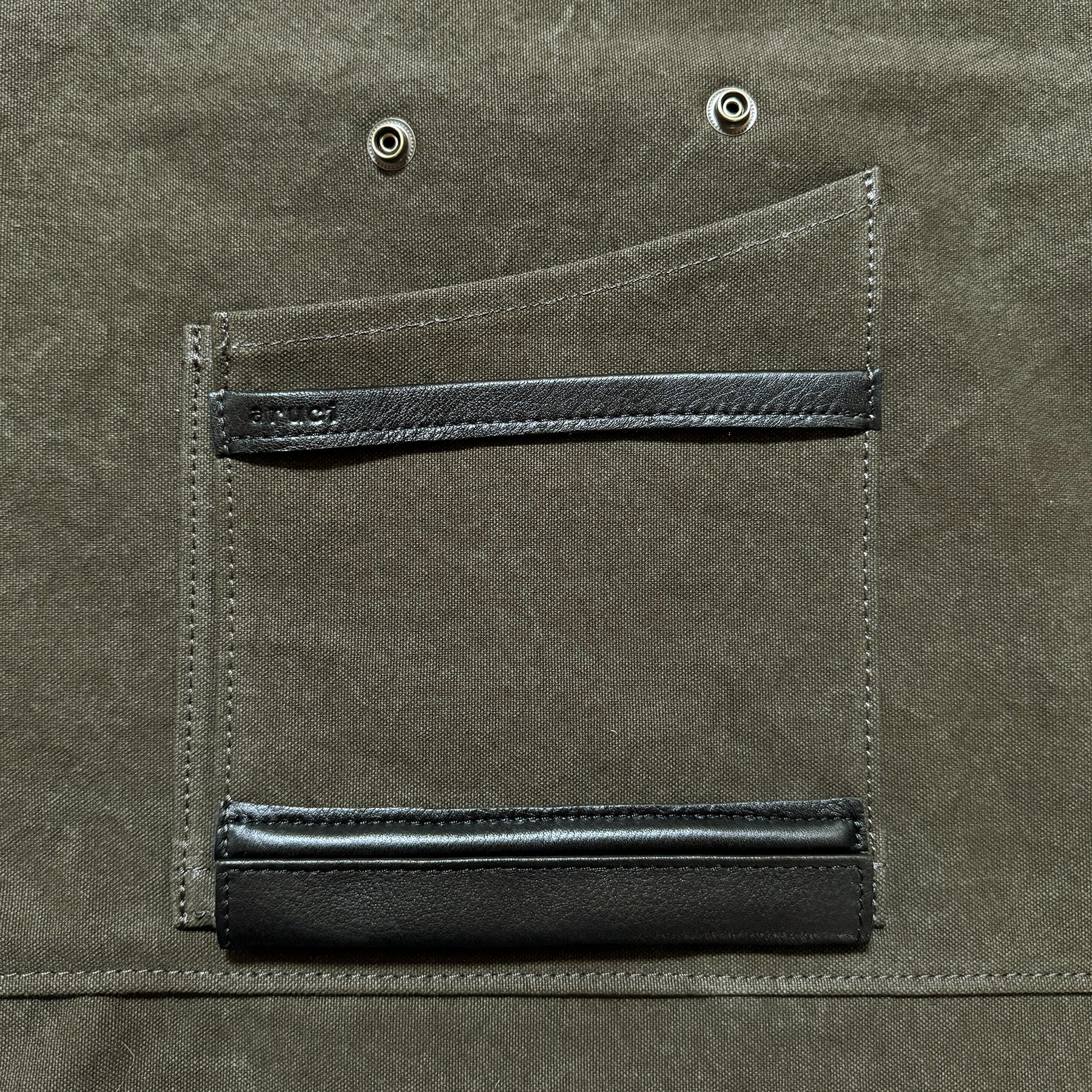 エプロンのメインポケットにシザーポケットを付けて、シザーエプロンにすることができます。美容師用・トリマー用・フローリスト用から用途に合わせてお選びいただけます。ホックでエプロンに付ける仕様なので、取り外して洗濯したりaruciのシザーケースやエプロンと併用することができます。